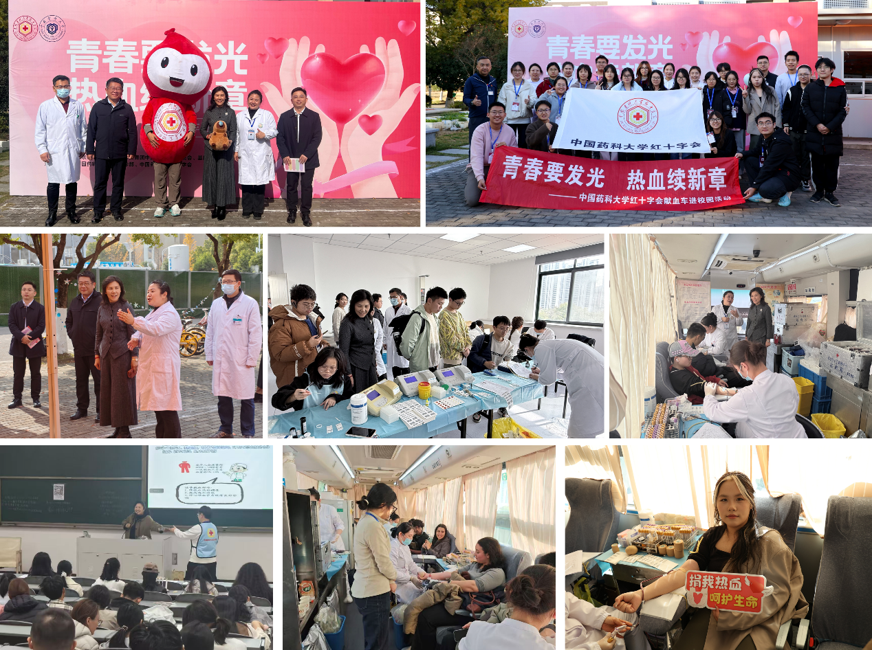 11月24日至25日,我校联合南京红十字血液中心成功举办“青春要发光,热血续新章”献血车进校园活动,为南京市临床用血需求积极贡献中国药大力量。校党委副书记朱红带队来到活动现场,亲切慰问参与献血的广大师生及医务人员。现场,在校红十字会学生志愿者的引导下,师生们依次完成信息登记、健康检查、血液初筛等环节,在确认血液检验合格后,接受静脉抽血。医务人员积极做好献血后的留观保障工作,并为大家准备了各种能量补给。现场师生献血热情高涨,活动井然有序。本次活动共有584人参与献血,总采血量达15万毫升。据统计,