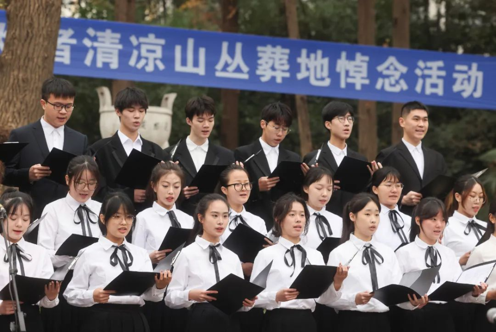 河海师生在校内南京大屠杀死难者清凉山丛葬地举行悼念活动
