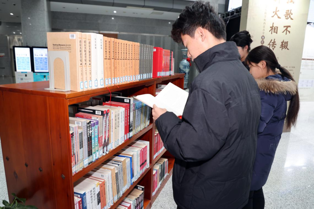 在中国药科大学图书馆内,陈列着“勿忘国耻、圆梦中华”立牌,旁边的书架上摆放着南京大屠杀惨案相关主题图书200余册,从史料到学术研究成果再到纪实文学。据该校图书馆相关负责人介绍,这些图书将在图书馆二楼大厅长期展出,同时会在微信公众号进行专题图书推荐,方便全校师生深入了解关于南京大屠杀这段不能忘却的历史。