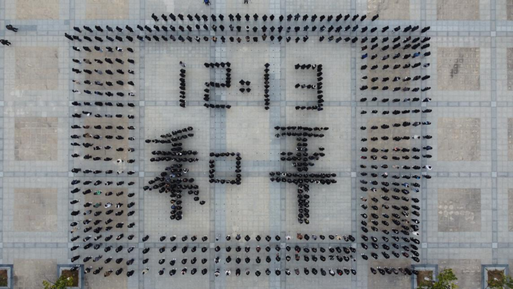 “一九三七,祸从天降,一二一三,古城沦丧。侵华倭寇,掳掠烧杀,尸横遍野,血染长江。”12月13日早晨,铿锵有力的《和平宣言》诵读声划破了中国药科大学的宁静。中国药科大学江宁校区1936广场上,700余名师生身着深色服装、胸前佩戴白花静静肃立,以身体做笔勾勒出“12·13”及“和平”字样。2023年12月13日是第十个南京大屠杀死难者国家公祭日,江苏高校师生开展国家公祭日悼念活动,悼念和缅怀南京大屠杀死难者和所有在日本侵华战争期间惨遭日本侵略者杀戮的死难同胞。