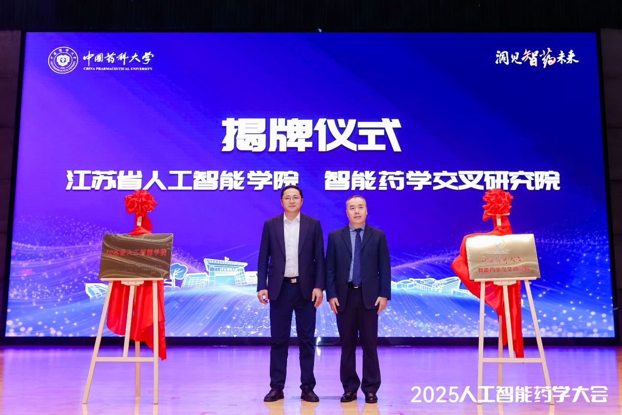杨勇副校长、丁锦希副校长共同为江苏省人工智能学院和智能药学交叉研究院揭牌