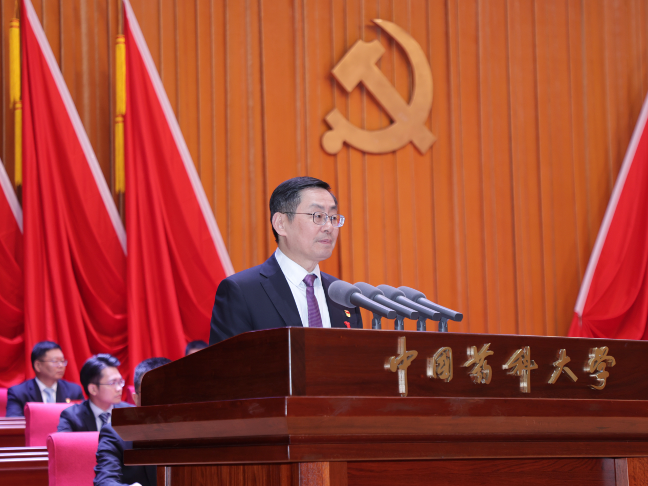戴建君代表中国共产党中国药科大学委员会作了题为《坚守兴药为民初心 扛牢教育强国使命为加快建成药学特色世界一流大学而团结奋斗》的报告。报告共分为四个部分:过去五年的砥砺奋斗;勇担教育强国建设新使命;奋力开创高质量发展新格局;扎实推进新时代党的建设。