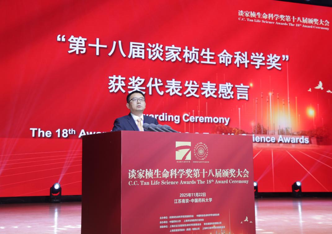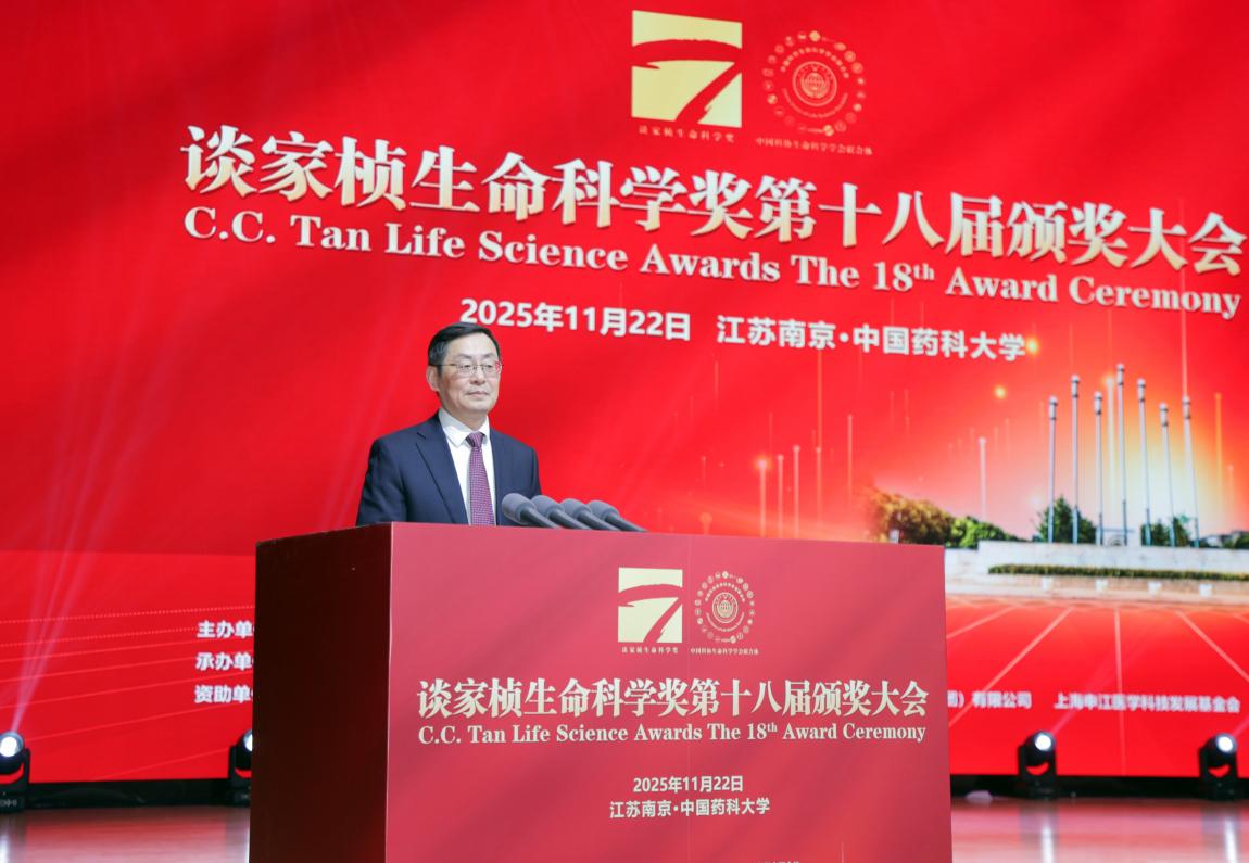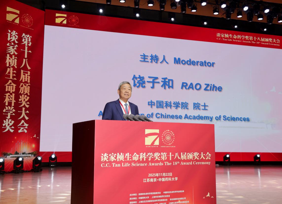 11月22日,由谈家桢生命科学奖奖励委员会和中国科协生命科学学会联合体主办,中国药科大学和上海市生物医药行业协会联合承办的“谈家桢生命科学奖第十八届颁奖大会”在我校隆重举行。谈家桢生命科学奖奖励委员会主任饶子和院士,全国政协常委、江苏省政协副主席胡刚,江苏省委组织部副部长李孝峰,全国政协常委、浙江省政协副主席、浙江大学医学院附属邵逸夫医院院长蔡秀军院士,香港中文大学校长卢煜明院士,清华大学孟安明院士,中国科学院昆明植物所郝小江院士,中国中医科学院广安门医院代谢病研究所所长仝小林院士,瑞典卡罗琳斯卡医学院曹义海院士,复旦大学党委副书记袁正宏,华中农业大学校长严建兵,上海白玉兰谈家桢生命科学发展基金会理事长谈向东,复星国际联席总裁陈启宇出席颁奖大会。我校党委书记戴建君、校长郝海平,原校长吴晓明,校党委常委、副校长戴亮、丁锦希,来自医药行业的领导和专家,以及我校师生代表共计1000余人参加会议。颁奖大会由饶子和主持。