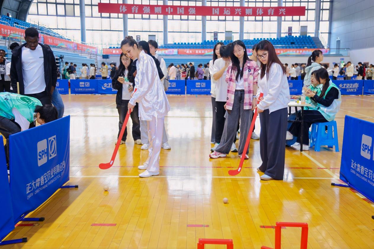 据悉,本届运动会设置射艺、八段锦两项集体项目,以及捶丸、毽球、木射、投壶、八段锦×本草功效精准配对、识药辨功·情景问答等个人体验项目。活动深度融合中医药特色与民族传统体育文化,以药为媒、以体育心,在强身健体中厚植文化自信,吸引了全校师生广泛参与。
