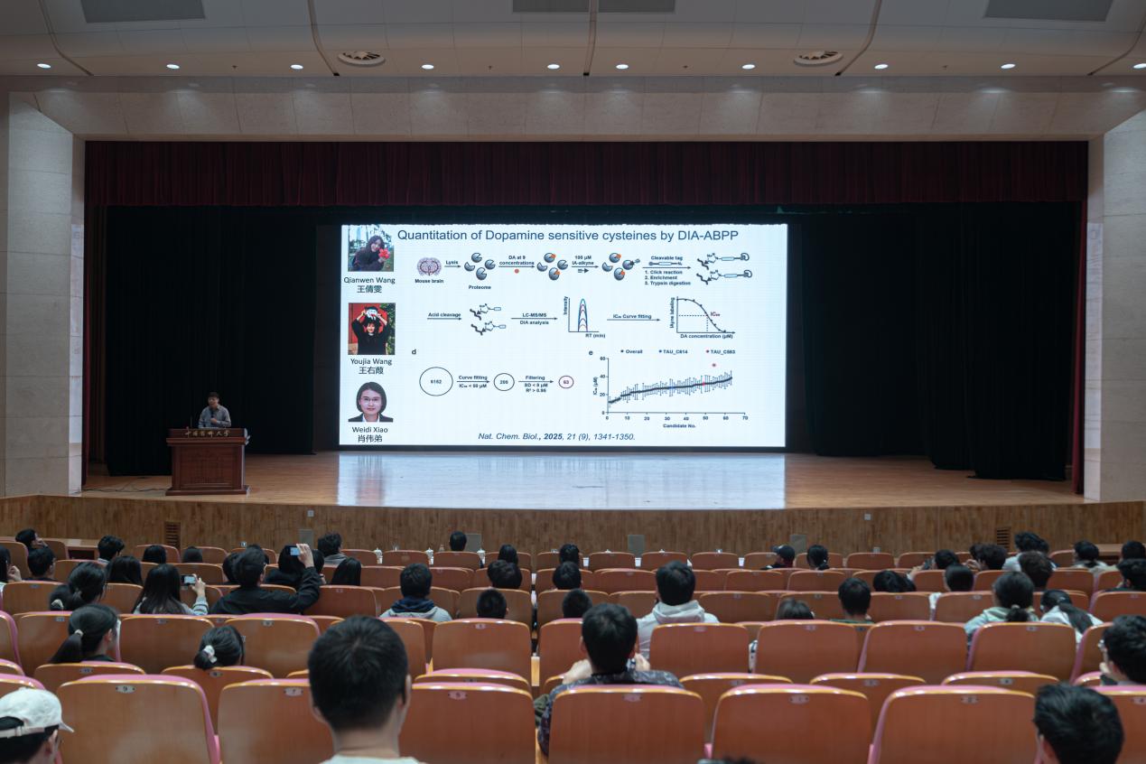 10月22日,我校第三期兴药大讲堂暨孟目的学院第28期药缘学术报告会在江宁校区大礼堂举行。北京大学前沿交叉学科研究院院长王初教授应邀作题为《化学和计算驱动的功能蛋白质组学》的学术报告。报告会由校党委常委、副校长杨勇主持,全校师生共计600余人参加。杨勇代表学校对王初的到访表示热烈欢迎。他指出,此次交流为广大师生搭建了高端学术对话平台,学校将以此次交流为契机,进一步深化药学与交叉学科的融合创新,推动科研攻关与人才培养质量同步提升,助力学校在相关领域实现新突破。报告中,王初围绕“化学和计算驱动的功能