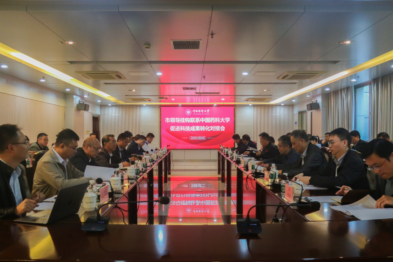 10月24日,南京市科技成果转化服务工作小分队进驻中国药科大学对接活动在我校玄武门校区举行。市人大常委会副主任胡万进、鼓楼区政协主席董伟、市人大常委会副秘书长叶斌、市科技局副局长朱超平等领导出席会议。我校党委常委、副校长杨勇,校长助理、玄武门校区党委书记邬瑞斌,相关职能部门负责人以及小分队全体成员参加会议。胡万进一行实地参观了药物代谢动力学重点实验室和转化医学研究院基因治疗中心并召开对接会。会上,朱超平详细介绍了派驻我校的科技成果转化服务工作小分队的成员构成、核心职责以及市领导联系高校的工作制度
