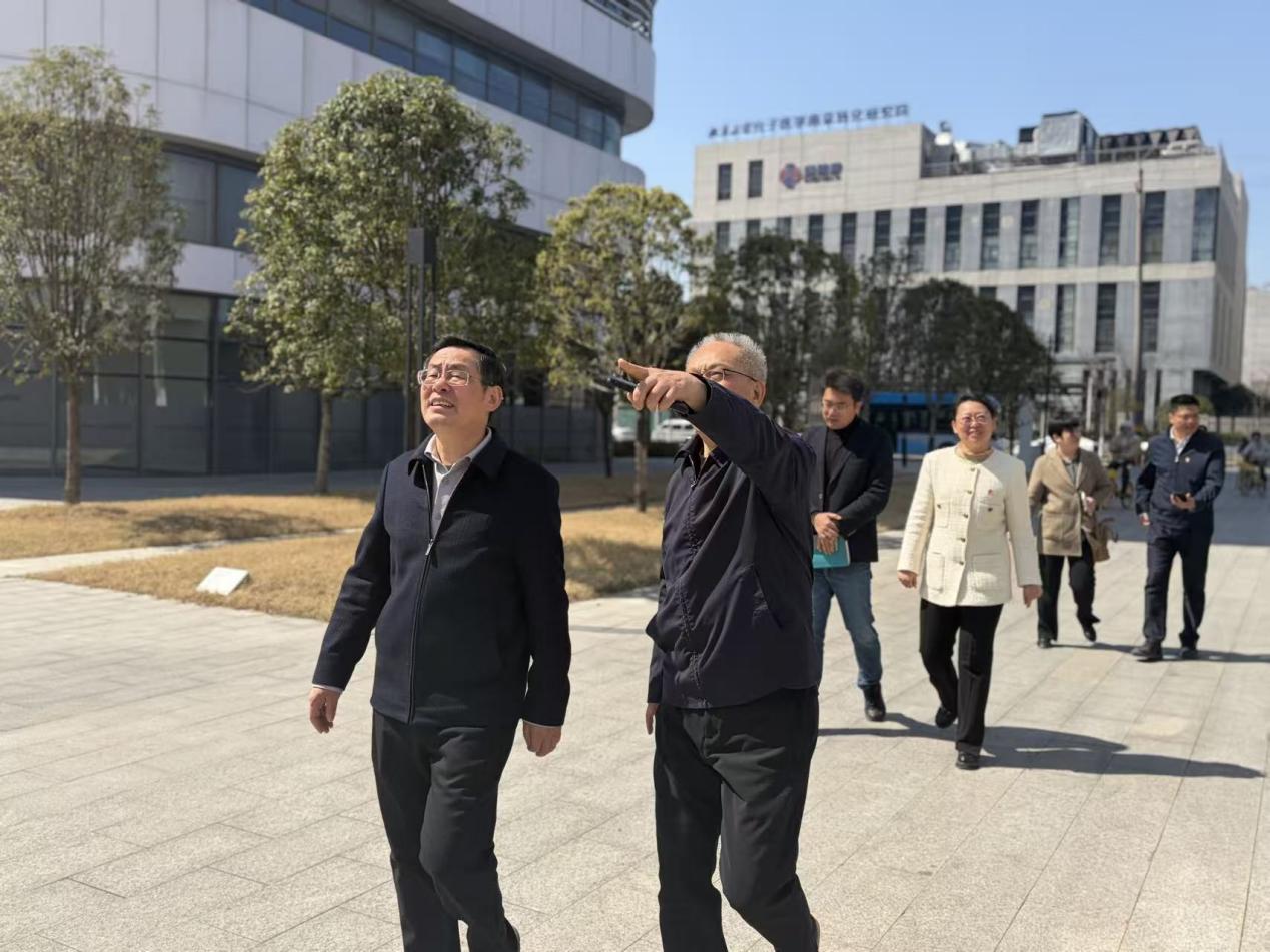 为推动学校“两校区一中心”战略部署落地落实,3月13日上午,校党委书记戴建君带队实地调研指导江北创新中心建设。江北新区生命健康产业发展党工委书记、管办主任许双华,以及学校相关职能部门负责人陪同调研。戴建君一行首先全面考察了全国高校区域技术转移转化中心(江苏)总体布局,随后实地调研智能药学楼(E栋)的平台布局、工程进度和办学环境。生物医药卓越工程师学院党委书记、常务副院长王欣然现场汇报了智能药学楼验收进度、科研仪器配备和首批师生入驻准备情况。目前,智能药学楼装修已进入全面收尾阶段,预计3月底交付。
