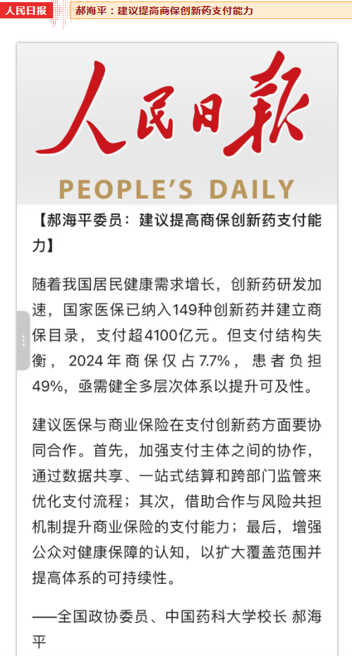 两会上的药大声音 | 新华网专访郝海平委员:健全药品支付体系 提升创新药可及性