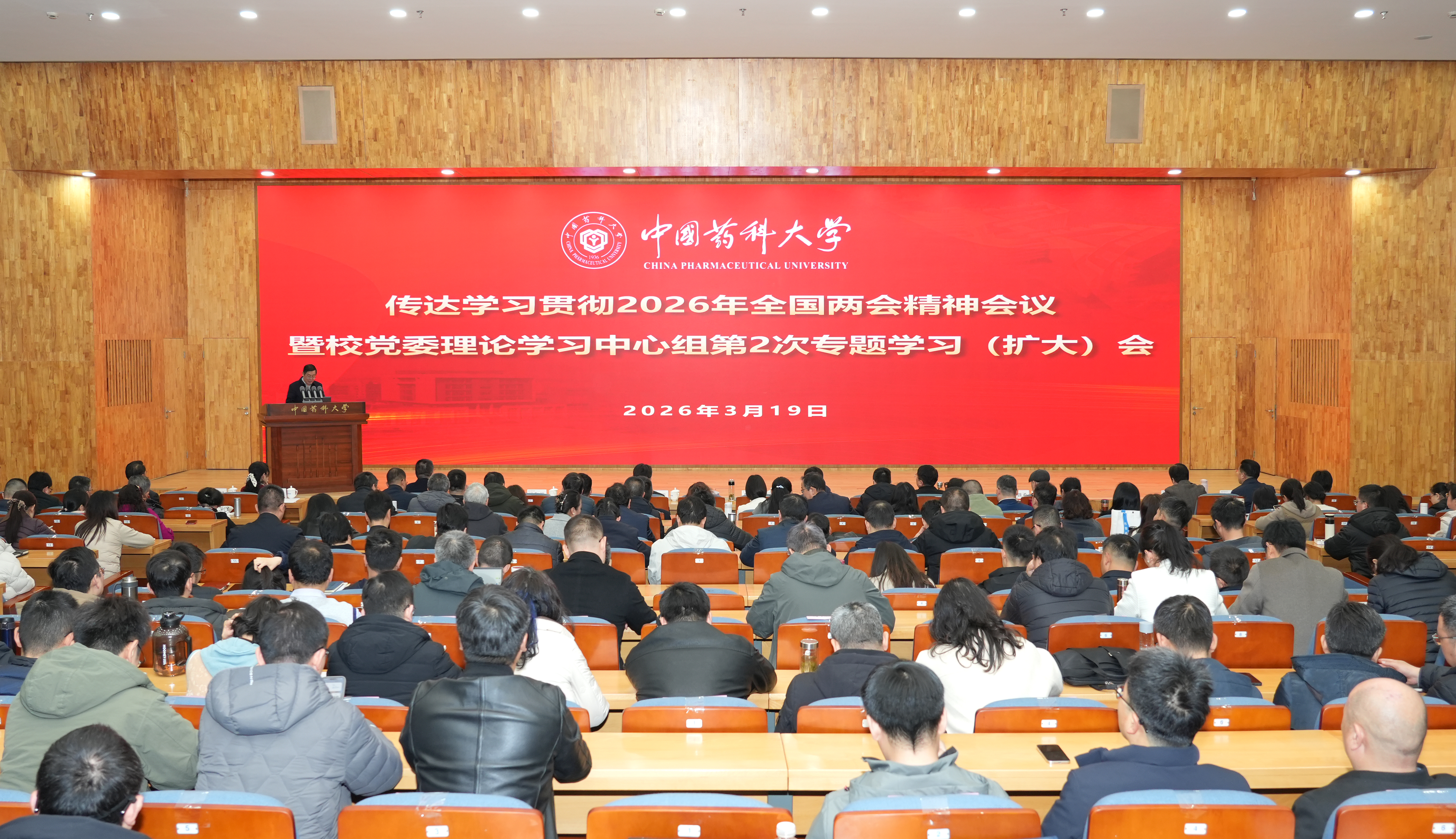 3月19日,我校在江宁校区二楼报告厅召开传达学习贯彻全国两会精神会议暨校党委理论学习中心组专题学习(扩大)会。全体在宁校领导,校党委理论学习中心组成员,处级以上干部,各级人大代表、政协委员,民主党派负责人,无党派人士代表,教工党支部书记,马克思主义学院全体教师以及教师代表等参加会议。会议由校党委书记戴建君主持。会上,全国政协委员、校长郝海平以《坚定信心、开拓进取,奋力书写“十五五”高质量发展新篇章》为题作专题辅导报告。他以全国两会“五大关键词”为切入点,系统介绍了2026年政府工作报告的主要内容