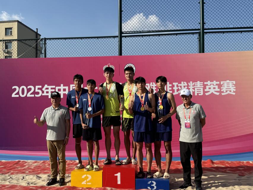 近日,由中国学生体育联合会主办的2025年中国大学生沙滩排球精英赛在长春师范大学举行我校沙滩排球队在教练万宁和张寒艳老师的带领下,经过7天激烈角逐,取得了沙排精英赛的历史最好成绩:由丁志峰、张世杰组成的男子队斩获男子组第三名,并荣获体育道德风尚奖