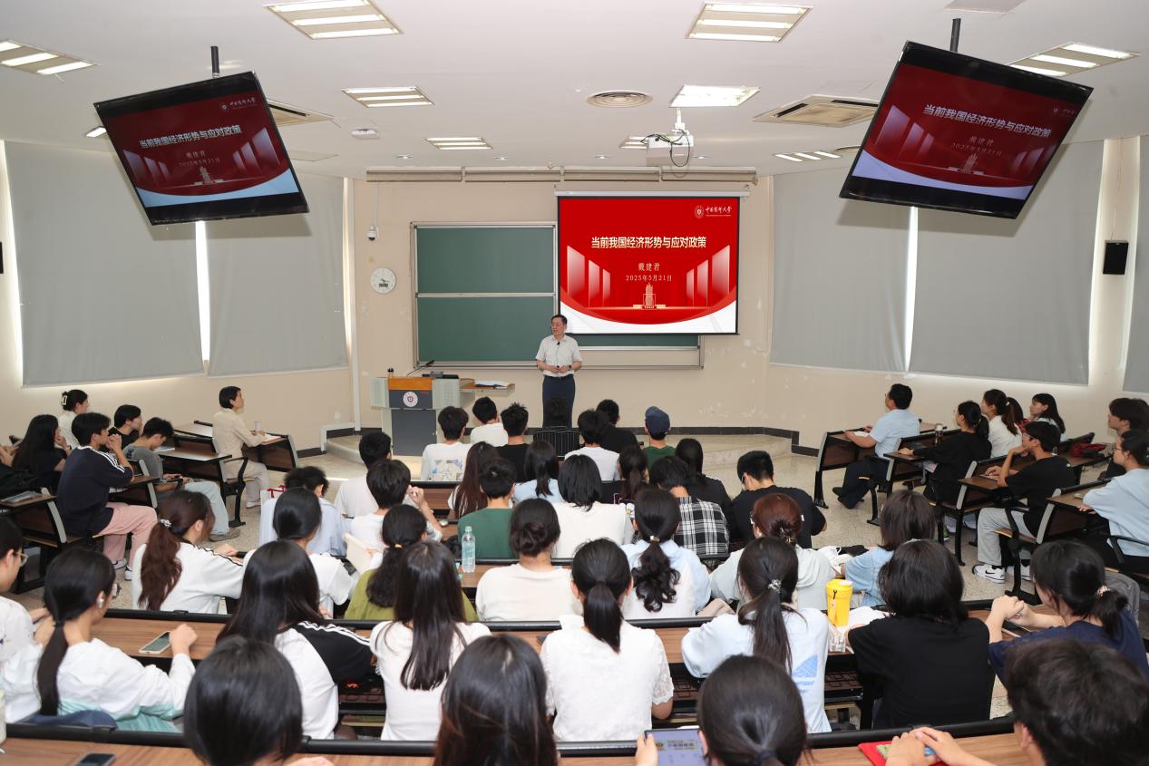 12月10日下午,校党委书记戴建君以“积极推动两岸交流,坚定不移推进祖国统一大业”为主题,为我校2023级药学1-6班和药学(诊断试剂方向)班本科生讲授“形势与政策”课。相关职能部门、马克思主义学院、药学院负责人,思政课教师以及辅导员代表旁听课程。授课中,戴建君从近期涉台重大事件切入,系统梳理了台湾问题的历史经纬,深刻阐明了两岸的紧密联结。结合历史管辖实践与《开罗宣言》、《波茨坦公告》、联大第2758号决议等国际法理文件,有力论证了台湾自古以来就是中国领土不可分割的一部分,强调其有坚实历史与法理